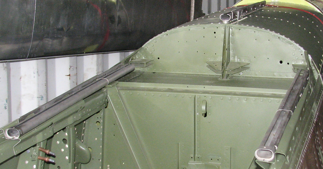 The left-hand fuselage in our new hangar.